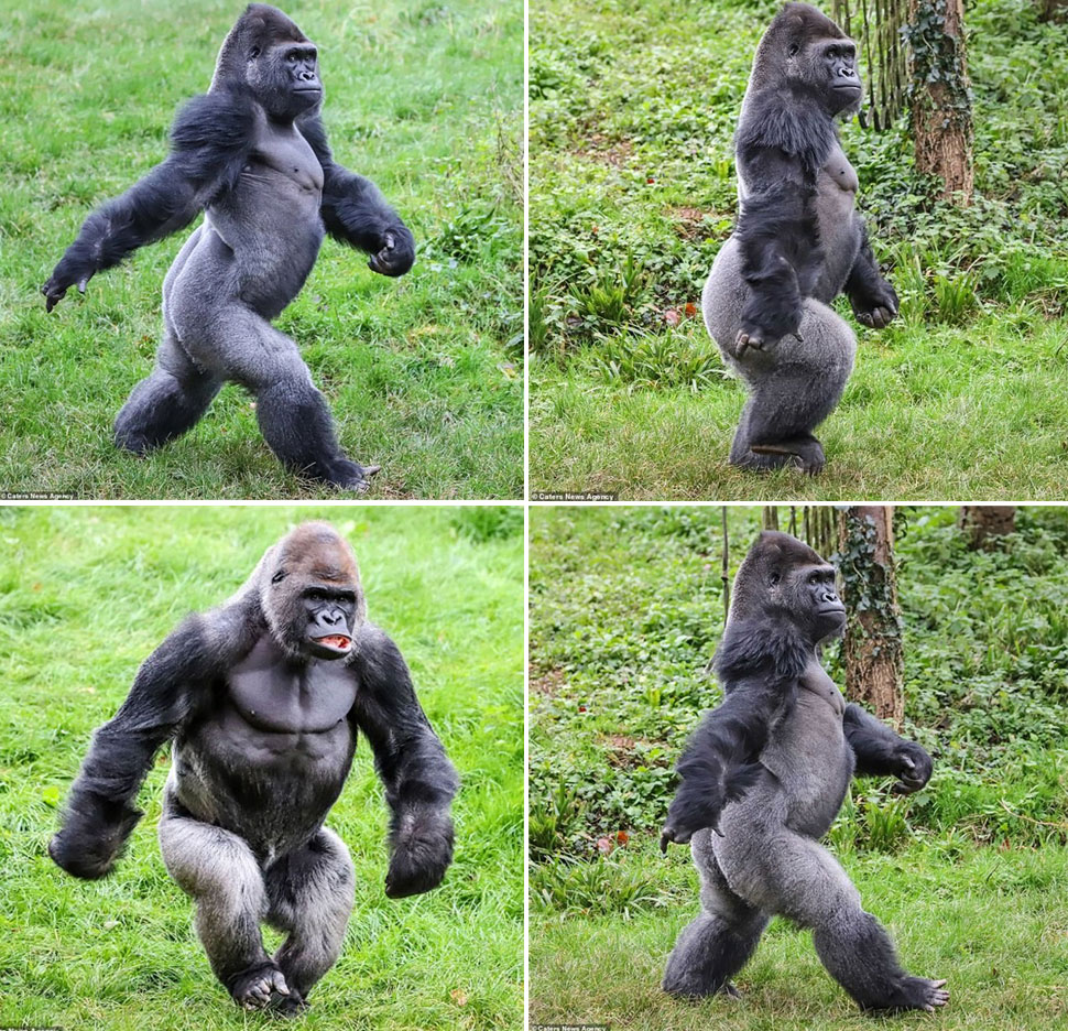 Anche il gorilla quando cammina su due zampe, deve forzarsi in lordosi, ma la sua è meno accentuata ed importante della nostra…