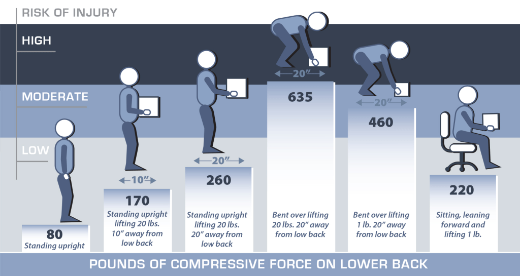 Concetti con questo appena illustrato sono stati valutati e ben compresi già da decenni, talvolta generando consigli errati come quello di usare le ginocchia per sollevare un peso… perfetto: ci danneggeremo le ginocchia allora!